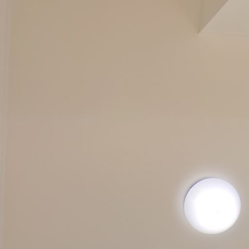 天井照明が新しめで明るい(確度70%):天井に丸型のシーリングライトが点灯しており、均一に照らしている。