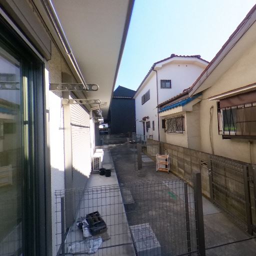 低層住宅に囲まれた立地(確度74%):隣は戸建てが隣接し、路地状の共用スペースが細長い。