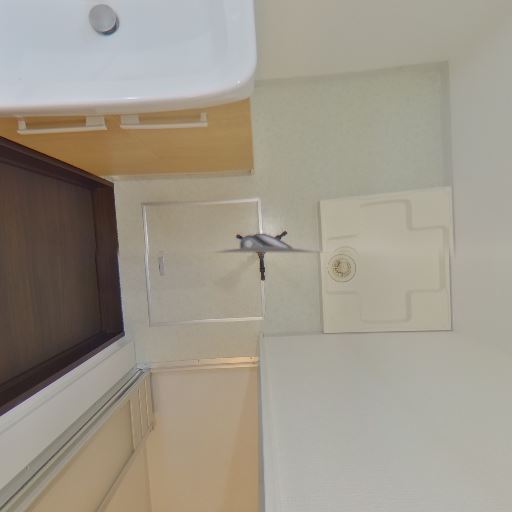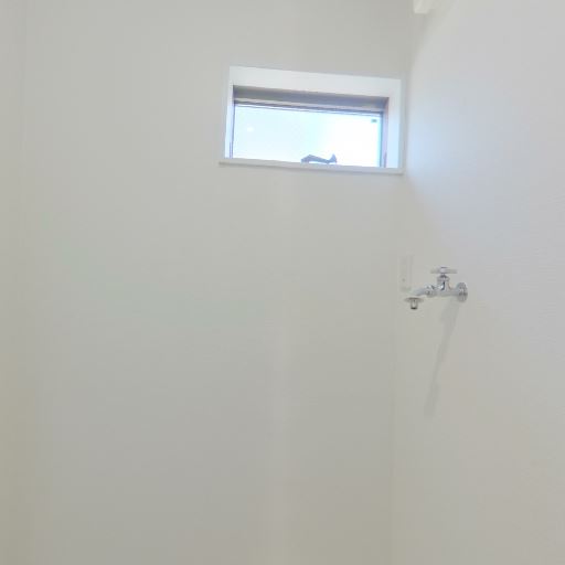 洗濯機置き場と給水栓(確度92%):壁面に給水栓、床面に洗濯機パンがある。