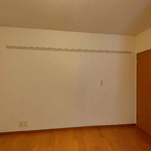 • 室内物干し・ピクチャーレール風の木桟(確度63%):壁面に水平の木製桟があり、フック等で軽い物を掛けられそう。
