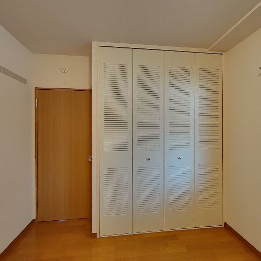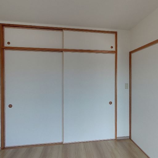 • 収納スペースあり(確度86%):折れ戸のクローゼットが壁一面に設置されている。