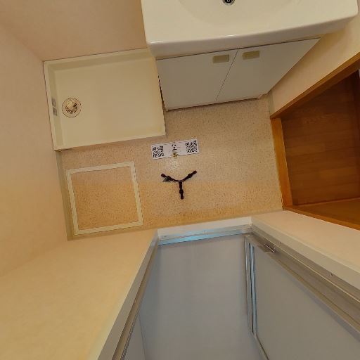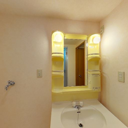 • 室内洗濯機置き場あり(確度92%):洗面室内に洗濯機パンと給水・排水口が確認できる。