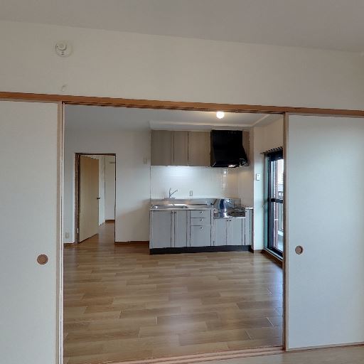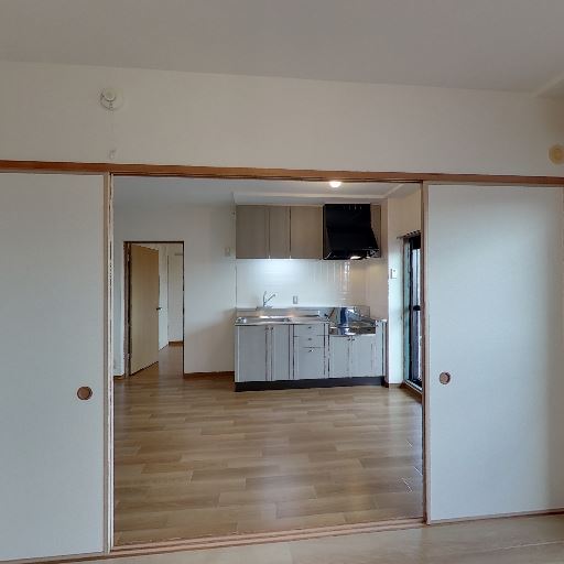 • 隣室とつながる広い開口(確度82%):和風の引き戸でDKと続き間になっており、開ければ一体空間として使える。