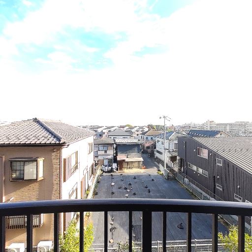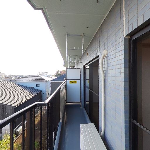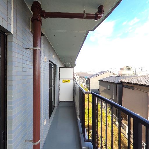 • ワイドなバルコニー(確度80%):長さのある通路状バルコニーで、手すり高さもしっかり。物置きや物干しに余裕がある。