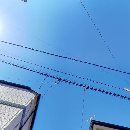 日当たり良好の可能性(確度64%):上空は抜けており、直射日光が差し込んでいる。南向きかは不明だが明るい。