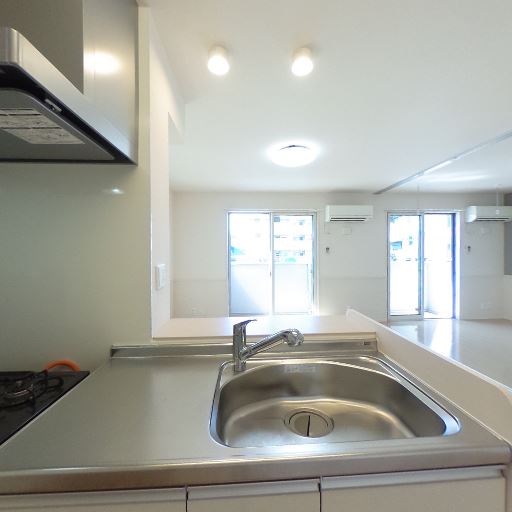 3口コンロで調理しやすそう(確度85%):キッチンに複数口のガスコンロが見え、同時調理がしやすい設備構成と判断できる。