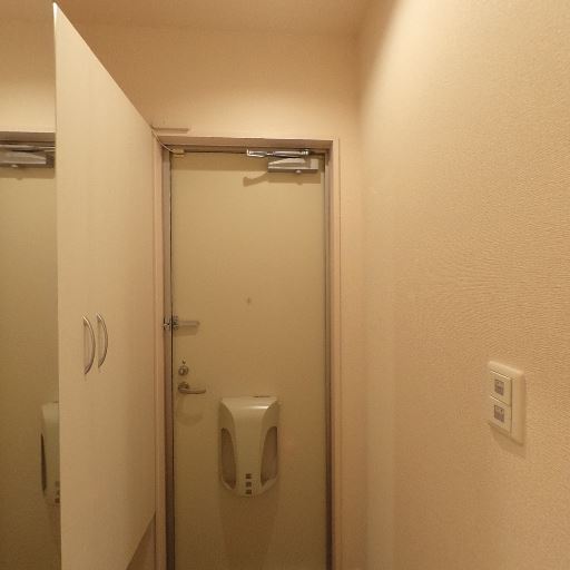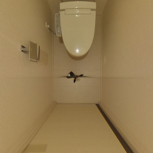 温水洗浄便座が付いている(確度93%):便座横に操作部が見え、温水洗浄便座付きの設備と判断できる。