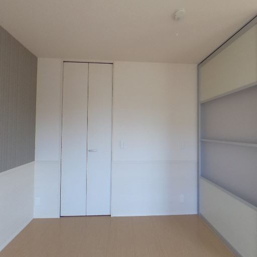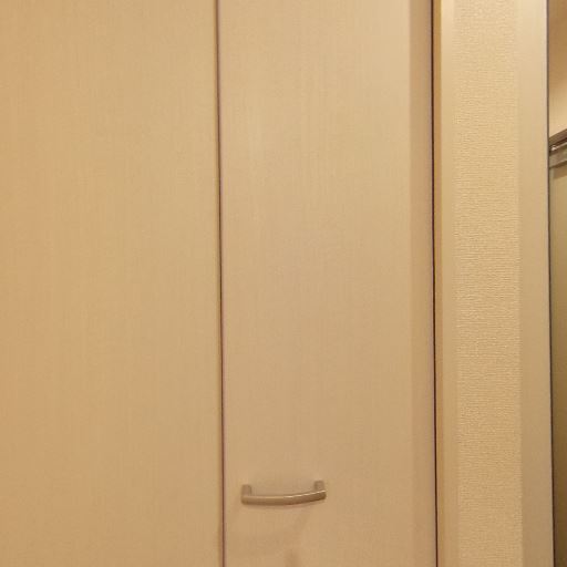クローゼット収納が確保されている(確度87%):背面側に縦長の収納扉があり、衣類や日用品をしまえる収納スペースが備わっている。