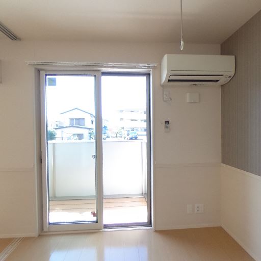 エアコンが既設されている(確度96%):窓上部付近の壁面にエアコン本体が設置されている。入居時の初期費用や設置の手間を抑えられる可能性が高い。