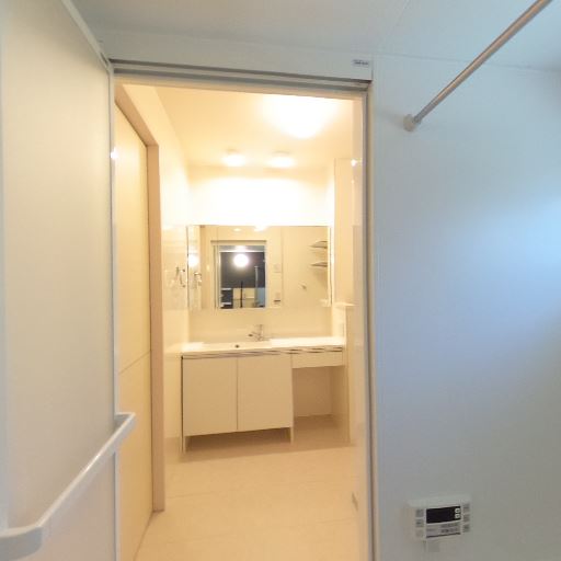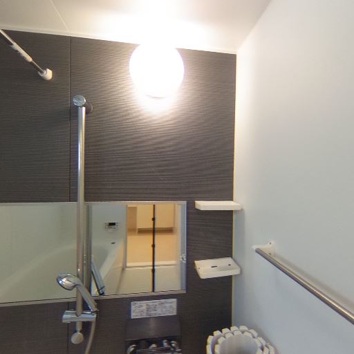 室内物干しまたはランドリーバーがありそう(確度71%):浴室天井付近にバーが見え、浴室乾燥や室内干し補助に使える可能性がある。
