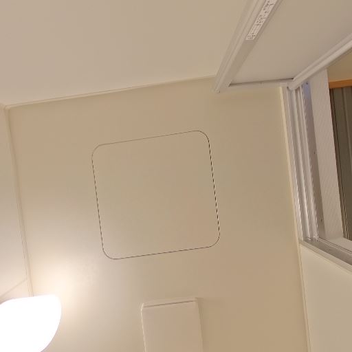 照明と換気は確保(確度71%):天井に照明器具と換気ファンがあり、明るさと換気は取れていそう。