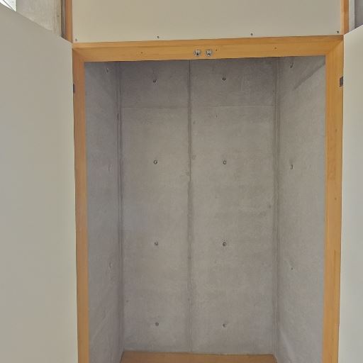 収納または小スペースの存在(確度78%):木枠で囲われた奥行きのある凹みがあり、クローゼットや収納スペースとして使えそう。
