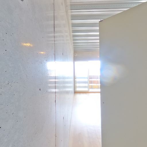 玄関〜廊下の細長い動線(確度76%):室内は細長い廊下状で、突き当たりに居室・採光面がある構成に見える。