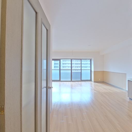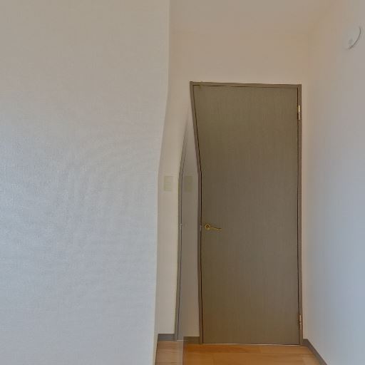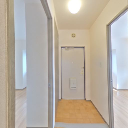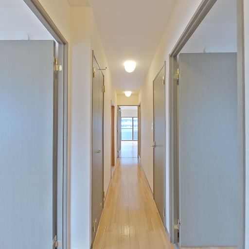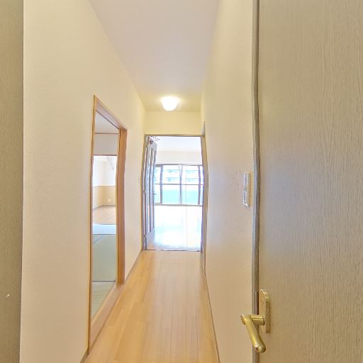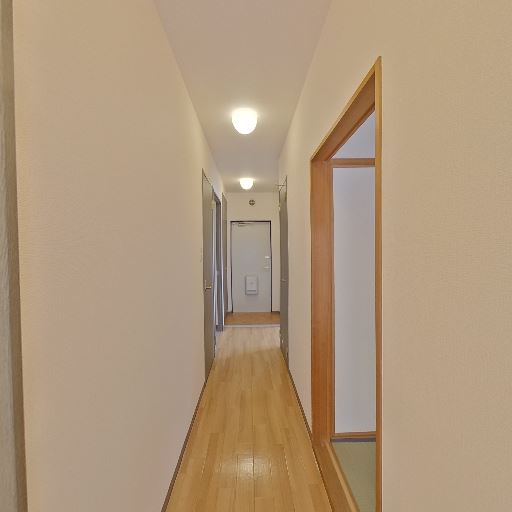 • 廊下の奥行きと動線(確度84%):細長い廊下が続き、突き当たりに玄関ドアとシューズボックスらしき設備が見える。複数の部屋へアクセスできるレイアウト。