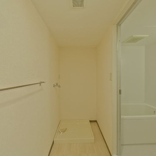 • 出入口の段差と隣接空間(確度63%):浴室ドアの先に洗面脱衣所が見える。段差は小さそう。