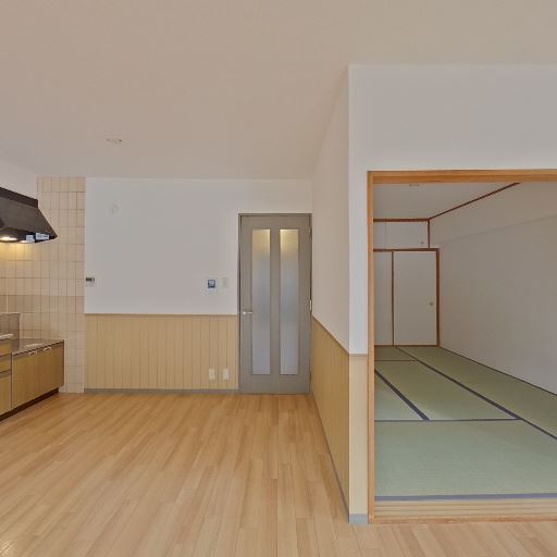 • リビングと一体利用可(確度86%):襖の先にフローリングの広いLDが続いており、開放して一体空間として使える。