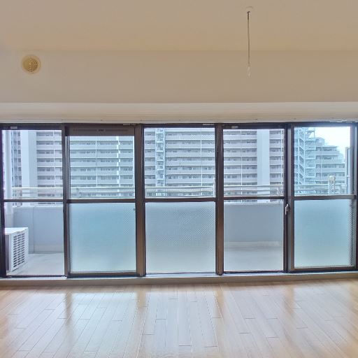• 大きな掃き出し窓とバルコニー(確度90%):壁一面に連続したガラスサッシがあり、外はバルコニー。採光と通風が期待できる。