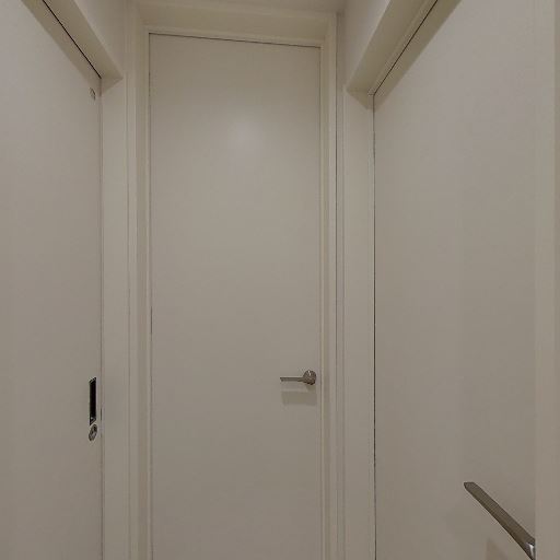 廊下の収納・建具構成(確度63%):玄関近くに左右へ引き戸/開き戸があり、正面にも室内扉があるため、収納やサニタリー等への動線が想定される。