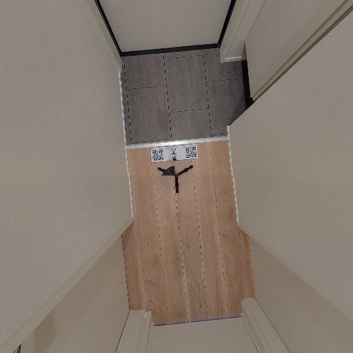 天井高めで圧迫感が少ない(確度70%):縦方向に高さがあり、ダウンライトが埋め込みでスッキリしている。