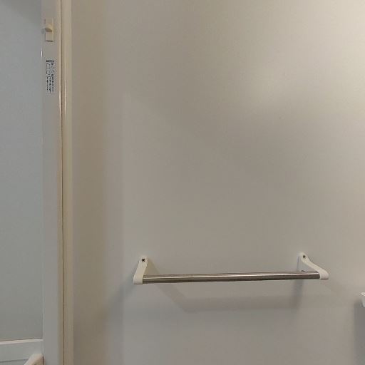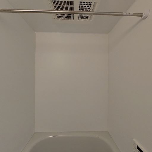浴室乾燥機と物干しバー(確度90%):天井に換気・乾燥機の吹き出し口があり、浴室内に物干しバーが設置されている。