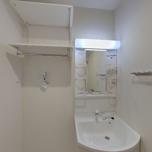 室内物干し・換気設備(確度71%):天井に換気乾燥機または換気口があり、洗面所の湿気対策がされている。
