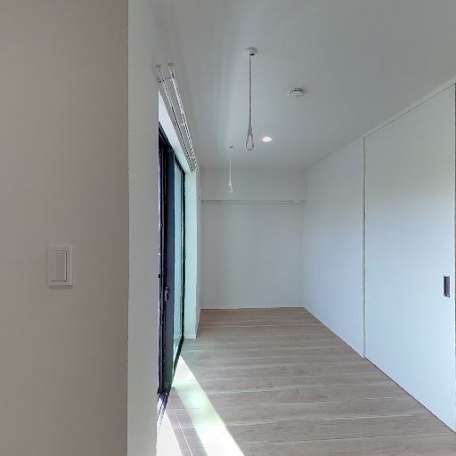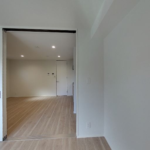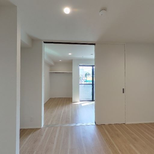 明るいリビングと奥の洋室(確度78%):引き戸で仕切れる奥の部屋にバルコニー面の採光があり、室内に光が入っている。