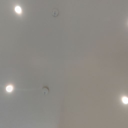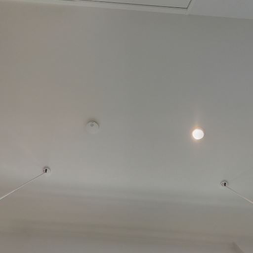 天井の設備と照明(確度88%):ダウンライトが複数配置され、火災報知器らしき機器も確認できる。