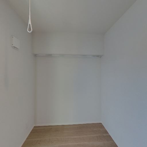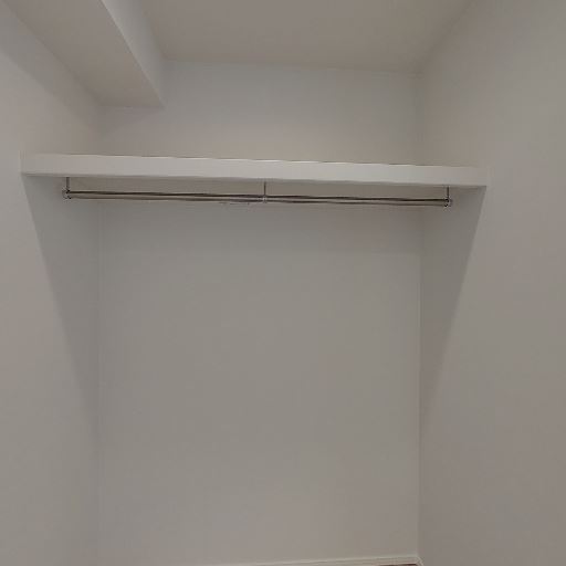 収納スペース(オープンクローゼット)(確度78%):枕棚とハンガーパイプのあるオープンな収納が壁面にある。