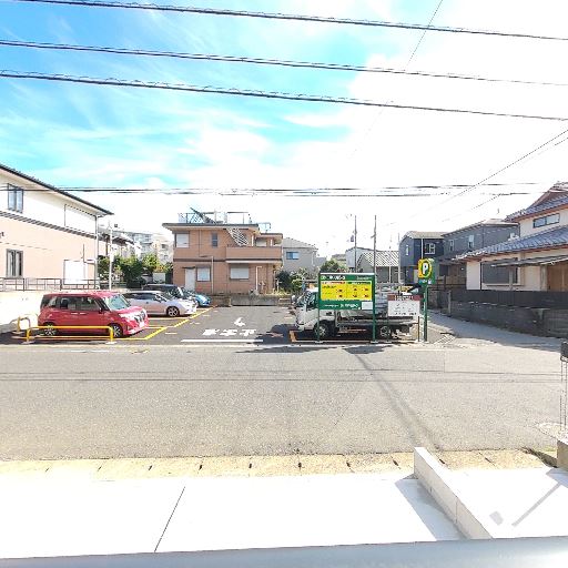 前面が駐車場で抜け感あり(確度86%):住戸の前が月極駐車場で建物の圧迫感が少なく、視界が開けている。
