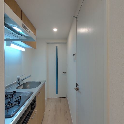 室内の新しさ・清潔感(確度77%):白基調の壁と淡色フローリングで全体的にきれい。傷や汚れは目立たない。