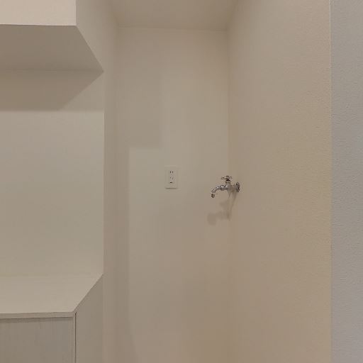 室内洗濯機置き場あり(確度90%):蛇口と防水パンが廊下脇のくぼみに設置されている。