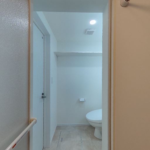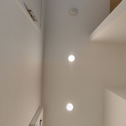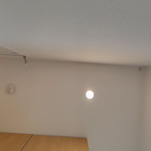天井設備(確度76%):天井に火災報知器があり、ダウンライトも確認できる。