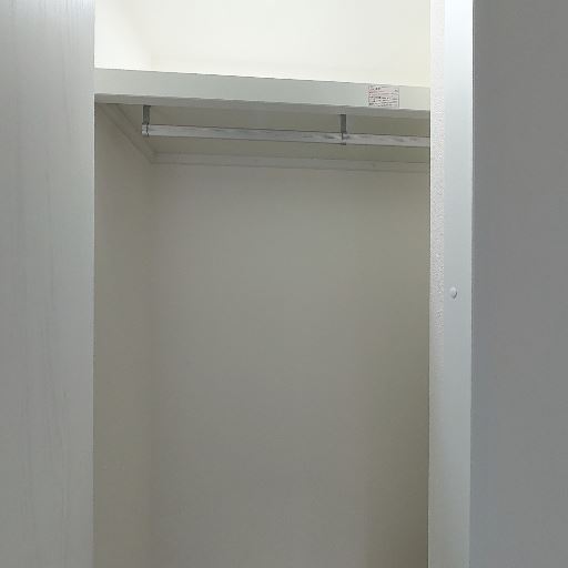 クローゼット収納(確度86%):ポールと上段棚のあるクローゼットが確認できる。奥行きは標準的で、ハンガー収納が中心。