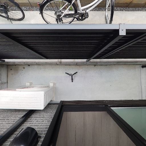 物干し金具と屋根付きで雨天でも干しやすい(確度86%):軒下に物干し金具があり、庇がしっかり出ている。