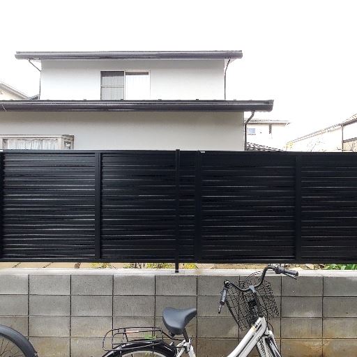 プライバシー配慮の目隠しフェンス(確度78%):視線は遮れる高さのルーバーフェンスが設置されている。