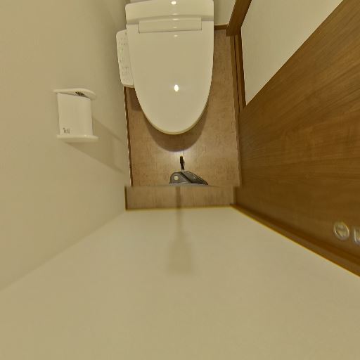 • トイレ個室の設備(確度84%):便器上に収納棚があり、ペーパーホルダーとタオルリングが設置されている。温水洗浄便座タイプに見える。