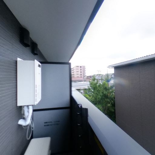 • バルコニーの奥行きと使い勝手(確度73%):手すり内側に室外機と避難ハッチがあり、通路幅は狭め。物干しやちょっとした物置きは可能だが動線は限定的。