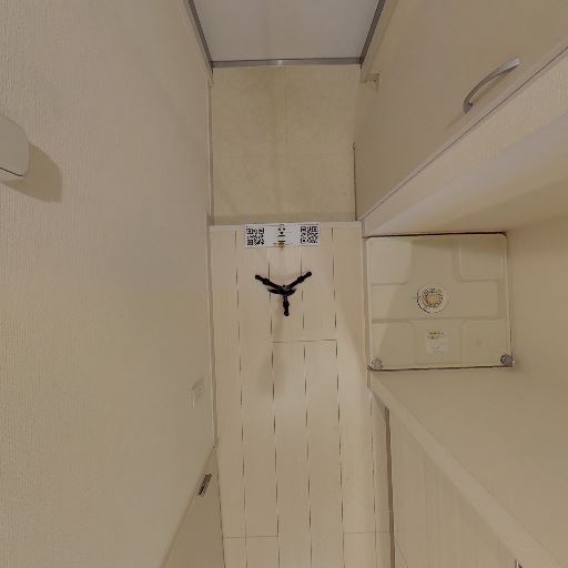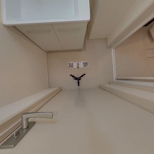 洗濯機置き場(確度88%):床面に給水栓と排水口があり、洗濯機置場が確認できる。