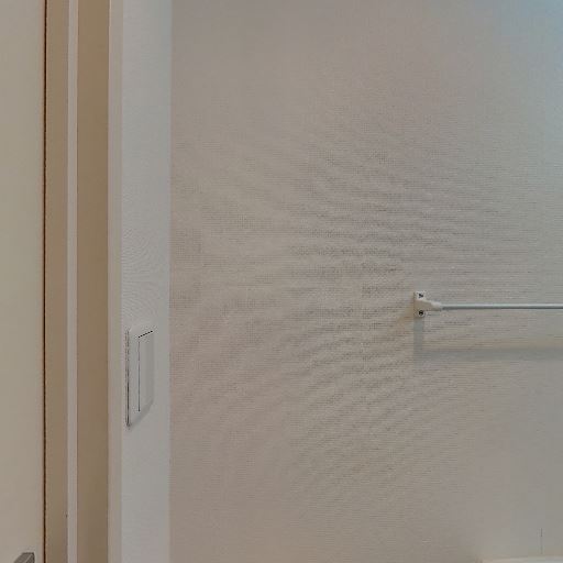タオル掛けあり(確度80%):壁にタオルバーが設置されている。