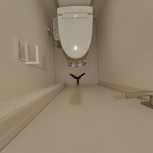 ペーパーホルダー位置(確度62%):ホルダーが右壁面前方と左側壁面後方に2箇所見える。右側はやや前寄りで使いやすそう。