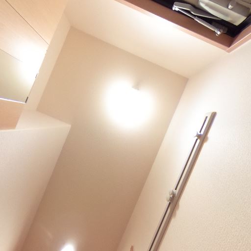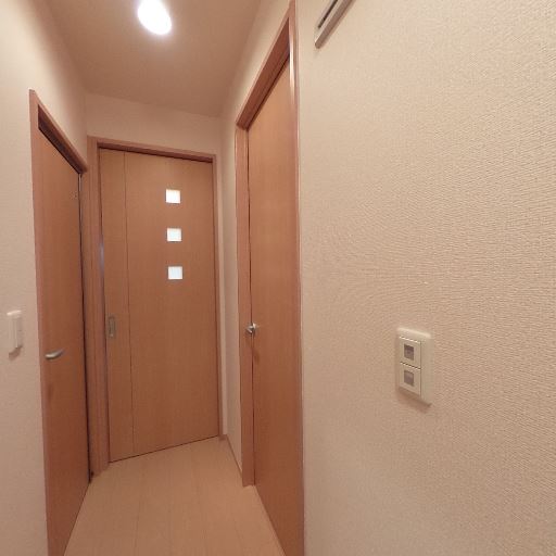 室内の明るさ(照明)(確度70%):天井照明が点灯しており廊下・玄関ともに十分に明るい。自然光は期待しにくい場所。