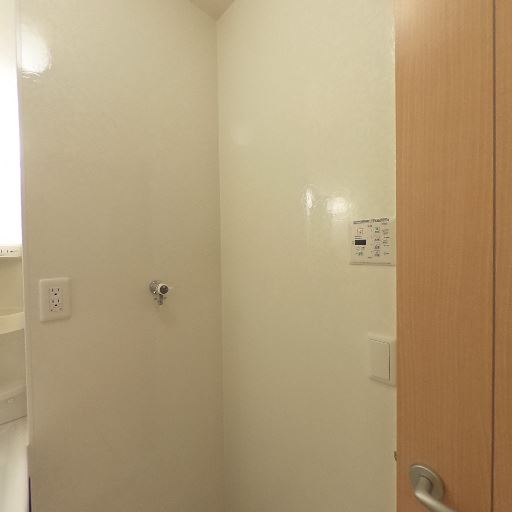 洗濯機置き場がある(確度83%):給水栓と防水パンがあり、洗濯機の設置を想定したスペースが確認できる。