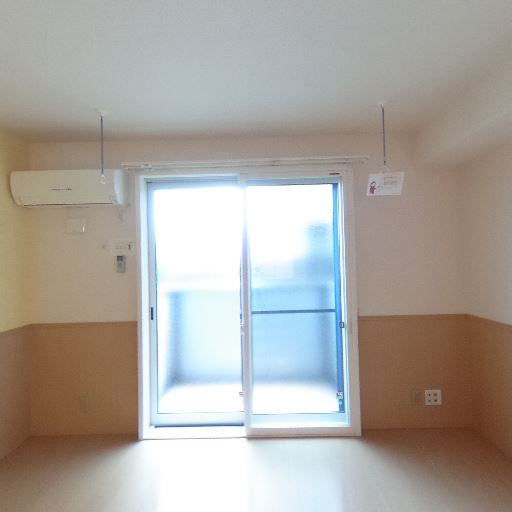 エアコン設置済み(確度90%):窓の左上にエアコンが設置されている。