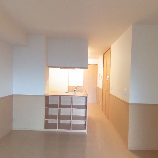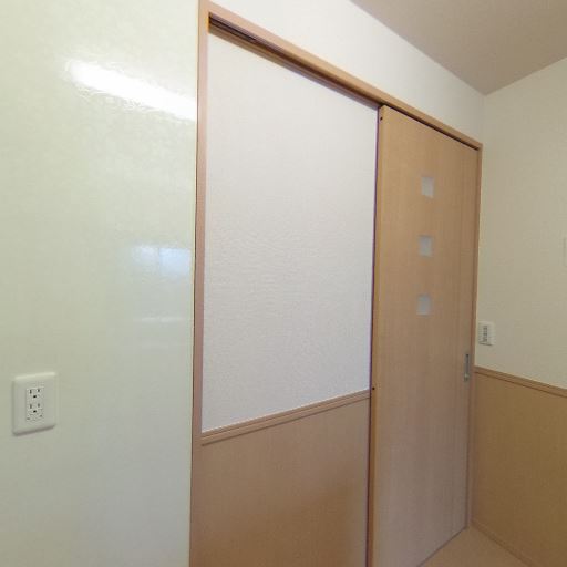 収納の有無(確度76%):キッチンの吊戸棚と、室内側に床から天井近くまでの扉付き収納が確認できる。