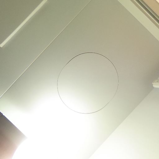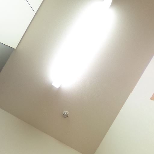 天井照明と火災報知器(確度83%):天井中央に長方形の蛍光灯/LED照明、近くに感知器が見える。