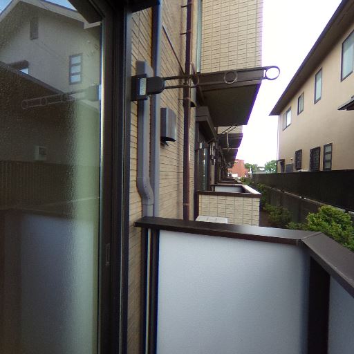バルコニーあり(確度90%):小型のバルコニー空間があり、物干し金物が設置されている。