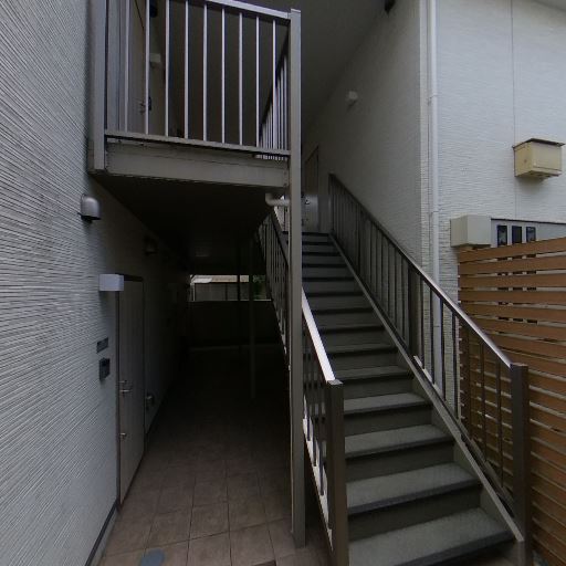 • 共用階段とエントランスの状態(確度77%):外階段と共用廊下が金属手すり・タイル床で清潔に見える。雨でも滑りにくそう。