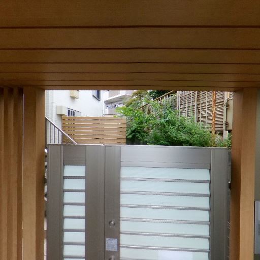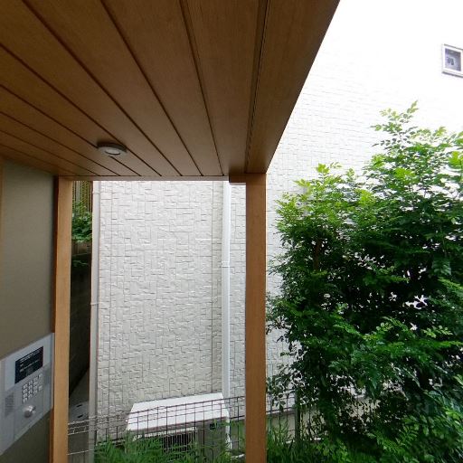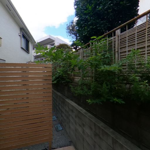 • プライバシー配慮の目隠しフェンス(確度70%):木調のルーバーや竹垣風フェンスが設置され、通りや隣地からの視線をある程度遮っている。