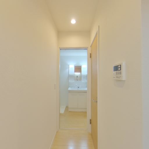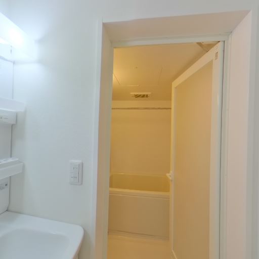 • 浴室が隣接(確度82%):洗面室から直接出入りできる浴室の引き戸が見える。