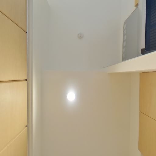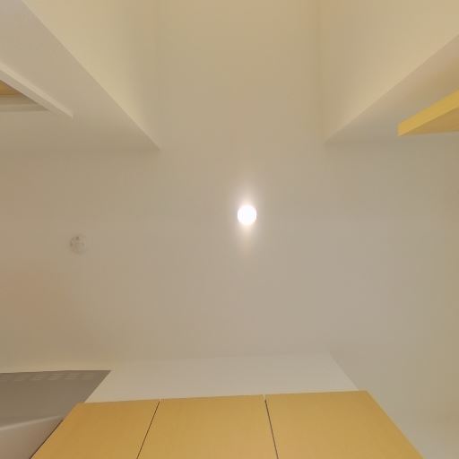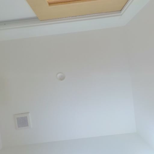 • 換気口とダウンライト(確度87%):天井に丸型のダウンライトと換気口が確認でき、明るさと換気が確保されている。
